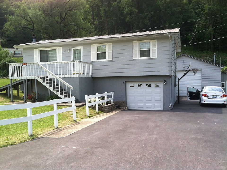 Ranch Style home, wood siding, new Metal roof , newer Electric heat and air, City water and sewer, outside well for all your outdoor needs, Above ground pool with a deck all around, security cameras, 1/4 acre lot , close to town and hospital but with privacy, House is raised with 3 large rooms downstairs. 2 detached garages with new metal roofs, Plenty of storage room.