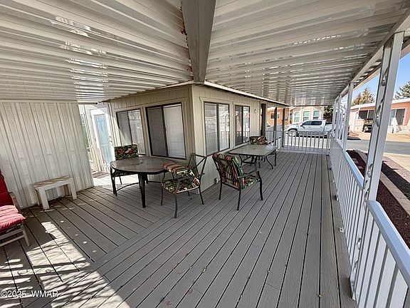 Great location in desirable Juniper Ridge! This well-kept park model is on a privately owned lot and has one of the largest wrap around deck in the park. Located near the clubhouse!! This beautiful home has neutral decor, granite counter tops in kitchen, white cabinetry, built-in storage and a huge wrap around deck with plenty of space for entertaining. Backyard has a storage shed and extra space with washer and dryer. Amenities include 18 hole golf course, White Mountain Lake privileges for swimming, boating & fishing. Poker tables, pickle ball, tennis, wood shop, silversmith, lapidary, pottery, live bands, dancing and much more. So much to offer in the desirable Juniper Ridge community!!