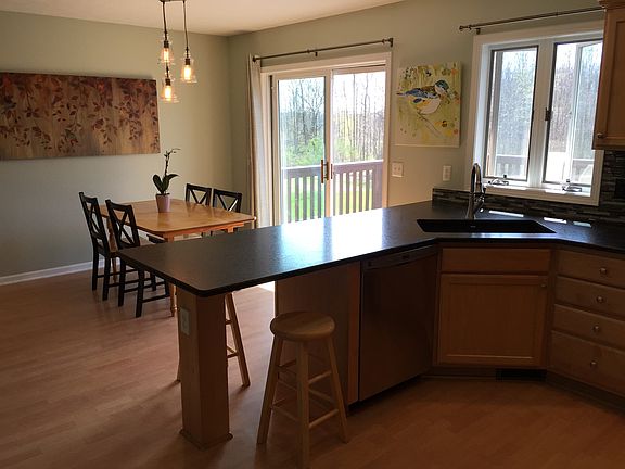 2,400 square feet of living space including finished walkout basement. Kitchen with granite countertops, maple cabinets, and stainless appliances. 3/4" Brazilian Cherry solid hardwood flooring in living room and all 4 bedrooms. 2 propane fireplaces. Master bath, walk-in closet in master bedroom. 2nd-floor laundry room. Large yard and 15.7 private, peaceful, mostly wooded acres with maintained trails and lots of wildlife. Walnut, maple, hickory, and lots of oak. No timber harvested in 10+ years. Clover food plot planted in 2014. Views of Palmyra village. 2 decks and a paver patio. Swimming pool, sledding hill, and a large fort in the woods for the kids. Great neighbors and a beautiful place to raise a family.