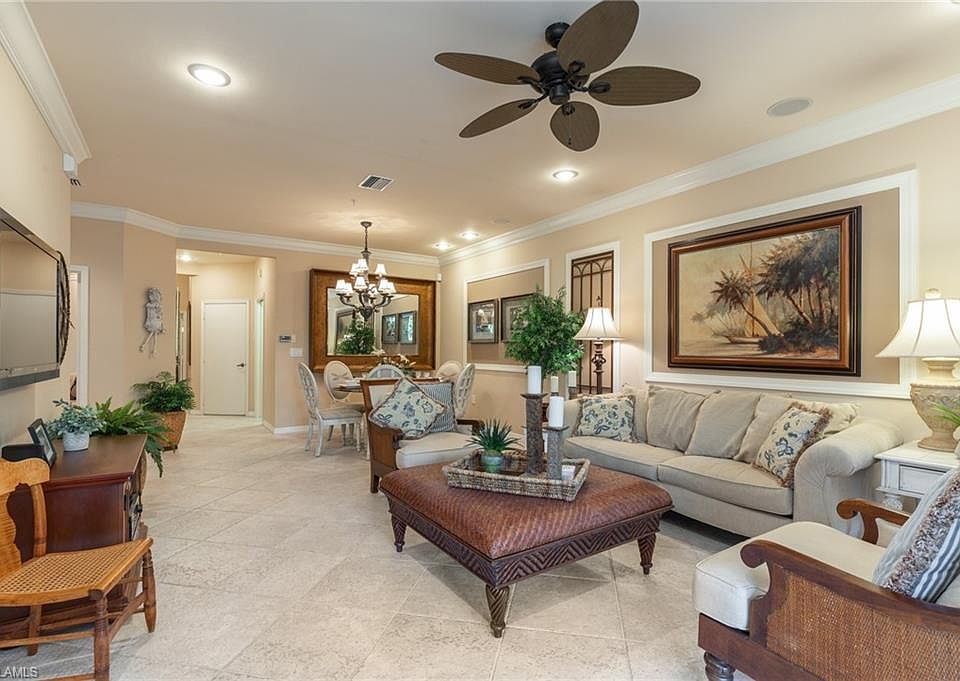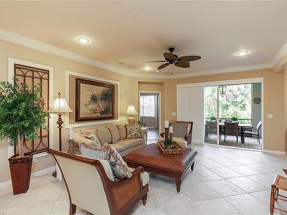 C.15505 - Enjoy peaceful tranquility on your spacious lanai while watching the sunset. This former model offers all the options and custom finishes you are looking for. Crown and decorative molding, tile on the diagonal, plantation shutters and custom paint through out take this condo to the highest level. The kitchen features wood cabinets, tile back splash, new stainless steel appliances and an eat in breakfast area. The spacious master bedroom has new hardwood flooring while the master bathroom features custom tile work. Custom tile work is also found in the second full bathroom. This home comes move in ready. Amenities include Community room, play area, fishing pier, fitness trail, Tennis and Pickle ball courts and a Canoe/Kayak landing on the Historical Mullock Creek. Membership is available at Shadow Wood Country Club with three championship courses. Shadow Wood Preserve offers close proximity to Regional Southwest Airport, the Beaches, and shopping and dining at Coconut Point, Bell Tower shops.This home will not disappoint!