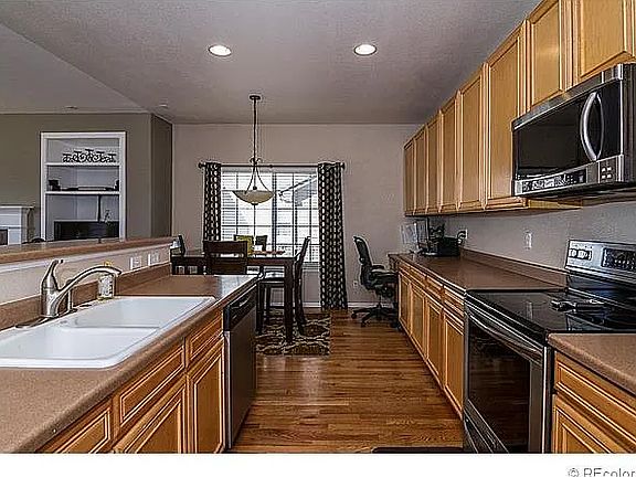 ABSOLUTELY BEAUTIFUL BRICK & FRAME 4 BEDROOM 2-STORY! STRIKING CURB APPEAL WITH COVERED ENTRY AND FRESH EXTERIOR PAINT! GREAT OPEN FLOOR PLAN! LIGHT & BRIGHT WITH CLERESTORY WINDOWS W/REMOTE BLINDS! HARDWOOD FLOORING IN ENTRY, FAMILY ROOM & KITCHEN. 2-STORY LIVING ROOM! KITCHEN BOASTS EAT-AT COUNTER PLUS EATING SPACE, 42" MAPLE CABINETS, SMOOTH TOP STOVE, BUILT-IN MICROWAVE AND BUILT-IN DESK! FAMILY ROOM OFF KITCHEN WITH CEILING FAN, FIREPLACE, RECESSED SHELVING, AND ACCESS TO REAR DECK! LARGE MAIN FLOOR STUDY! CONVENIENT MAIN FLR POWDER ROOM W/PEDISTAL SINK. UPPER LEVEL HOSTS 4 BDRMS AND 2 BATHS. VAULTED MASTER WITH WALK-IN CLOSET, CEILING FAN & 5-PIECE BATH W/SOAKING TUB! UPPER LEVEL LAUNDRY! BASEMENT FINISH INCLUDES HUGE REC/BONUS ROOM PLUS THEATER ROOM & HALF BATH. * This house is perfectly situated in a Prime location, Just a short walk from the public school. its offer easy access to major highways ,including 470, and conveniently close to Buckley Air Force Base, shopping center and Walgreens. Don't miss out on this opportunity -Schedule a visit today before its gone !. Yearly .