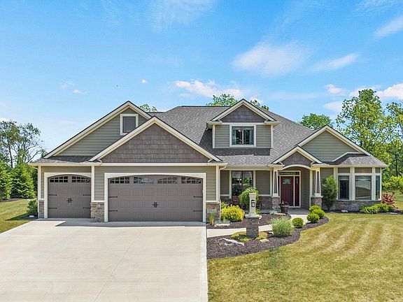 Welcome to Deer Hollow! This stunning home has been meticulously maintained and is ready for its new owner! From the moment you enter into the home you will be amazed by the stunning trim work, vaulted ceilings, granite countertops and abundant custom built-ins this home has to offer! The storage in this home is endless! Open floor plan on the main level includes a large living room, formal dining room, flex/family room, den or possible 5th bedroom, huge laundry room complete with cabinetry, a large mudroom with built in lockers and the gorgeous kitchen boasting stainless steel appliances, subway tile backsplash, reverse osmosis system and an oversized 7ft island with storage on both sides! Oversized living room with gas fireplace, vaulted ceilings, custom built ins and abundant natural light! The large 14x18 flex/family room is the perfect secondary entertaining space or playroom. Large master suite is complete with tray ceilings and an ensuite with large walk-in tile shower and large walk-in closet. Two additional bedrooms and a full bath complete the main floor. Upstairs you will find a large loft, two additional bedrooms a full bath and walk-in access to attic storage. The private backyard is complete with an oversized covered patio, black aluminum fence and a gorgeous view. This home is located inside Leo Schools and nestled on a quiet street. It is truly a must see!