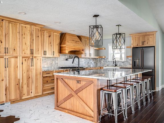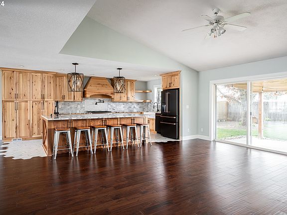 Exquisitely remodeled ranch style home in desirable Oregon City! This beautiful home features a gourmet kitchen with all the bells and whistles...you must see it to believe it! Custom solid rustic hickory/walnut cabinets, marble backsplash, granite countertops, custom built range hood, pot filler over dual fuel gas/electric stove, farmhouse sink, bar sink in island, wine cooler, built-in island microwave, delta fixtures and tile floor! Baths have porcelain style surrounds, granite and walnut hickory cabinetry also. Primary bedroom has french doors, custom floor to ceiling wood wall, walk-in closet and gorgeous bathroom. This home has brand new exterior paint, 3 car garage, RV parking, covered front and back porch, sprinkler system, 8x16 garden shed, firepit, custom gates, newly poured patio with cedar ceiling finishes, fenced backyard and No HOA!! We are ready for the pickiest buyers out there! Book your private tour today.