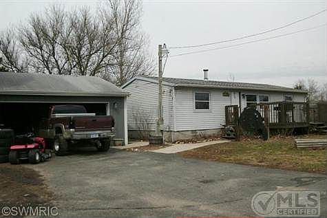 Absolutely charming 3 bedroom, 2 bath double wide on almost an acre. Home features a forced air furnace plus a pellet stove, central air, trash compactor, newer windows, deck, 2 car detached garage, and a tranquil pond with electricity. Views from back yard are amazing. Priced right, with the possibility of a land contract. This one is a must see!!!