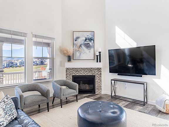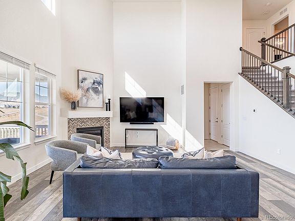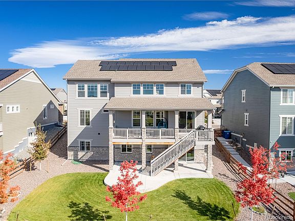 A perfect fusion of expansive mountain views across open space and optimal floorplan functionality makes this the ideal Candelas home. Contemporary design and architecture create open concept living for seamless flow. Natural light is at the prominence of the great room’s design where southern sun projects through two stories of windows onto the walls with brilliance. A gas fireplace is the quintessential complement to watching snow gently fall onto the mountain scape through the windows. Homemade happiness is crafted in the gourmet kitchen that combines style and function. A multitude of rich shaker cabinets topped with sleek, honed black granite are contrasted by light subway tile and the sheen of stainless appliances creating a sophisticated allure. The generous island invites everyone in to gather. A butlers pantry and walk in pantry provide all the storage you need. The formal dining room is a more intimate space to make special occasions memorable. The rustic, wide plank wood floors anchor the soothing, neutral palette. This ultimate upstairs layout offers 4 beds and 3 baths all on the same level and includes a blissful primary suite with spectacular mountain views that will remind you that you are living the Colorado dream every day. The expanded shower and double vanities in the primary bath add a touch luxury and the cleverly connected laundry room provides unequivocal convenience. Your guests will love the private main level bedroom and full bathroom. Get comfortable and settle in for game and movie nights in the finished, walk out basement that offers a 6th bedroom and 5th bath. Enjoy the fresh Colorado air year round and entertain on the expansive covered terrace spanning the entire length of the great room with effortless access to the lower patio to broaden the outdoor space. You will cherish the inspiring views and oversized yard that doesn’t end at your fence line. Walk out your gate and on to the adjacent path connecting to a 13 mile trail system.