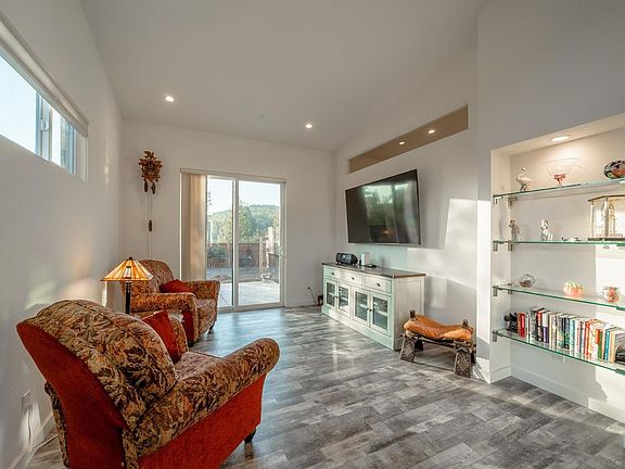 This gated, upscale planned unit development is the epitome of eco-luxury. This 2360 sq ft, single level, green home contains geothermal heating and cooling, grid tied solar, 3D max windows, LED lighting, and spray closed- foam insulation, and Hardie board siding. Beautiful cabinets, engineered wood floors, tile backsplash, an island with a deep sink, recessed lighting, and Bosch stainless steel appliances make for anyone's dream kitchen. The open living room includes high sloped ceilings, sliding doors on both sides, a gorgeous fireplace insert, and an overhead fan. There is a bonus room and a laundry room with a sink and built-in cabinets. Additionally, there is an attached two car garage. Enjoy the outdoor sanctuary on over a quarter of an acre with lovely views. Relax on your all-seasons covered patio with a freestanding gas fireplace. Outside is a Tuff Shed, fencing surrounding the entire property, and $30,000 worth of professional landscaping.