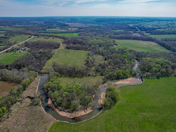 Gorgeous 72 acre property in Stockton, MO with no restrictions, year-round Bear Creek frontage, ponds, 2 natural springs, and black top road access. Current uses include excellent deer, turkey, and arrowhead hunting; cattle farm; hay production - property yields 40-50 bales (5x5) per cutting - field is cut 2-3 times per year; open pasture; marketable timber; trails maintained throughout the property; perimeter fenced, cross fencing, & gates.The 2 bedroom/1 bath farmhouse is in great shape with new roof, vinyl plank flooring, & paint and currently provides monthly rental income. Several amazing building sites on the property too, if building a home is in your future.Convenient location - less than 5 min to Stockton for groceries/gas. 1.5 mile to Stockton lake access. 2.5 miles to nearest fire station. Stockton, MO is located 2 hours south of Kansas City, and 1 hour north of Springfield MO. This lake-town is home to approximately 2,000 people, and a destination city for those who love the water, fishing, boating, hiking and more. Absolutely beautiful property, well cared for and it shows.