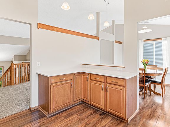 This fantastic home is located in a great Farmington neighborhood, it’s MOVE-IN READY and has it all! The home features 4 bedrooms, 2 bathrooms, and a 3 car HEATED GARAGE. The home offers an inviting open concept layout with vaulted ceilings and NEWER CARPET throughout. There are 2 bedrooms with walk-in closets, a full bathroom, living room, dining room, and kitchen on the upper level. The kitchen includes new quartz counters, a new tile backsplash and cabinet hardware, ample cabinet and counter space, a large pantry, and a breakfast bar. The dining room walks out to a fantastic new Trex deck that was installed in 2023 and the fully fenced in backyard. The walk-out lower level includes 2 additional bedrooms, a second full bathroom, and a spacious family room with a gas fireplace. Updates include NEW WATER SOFTNER in 2023, NEW ROOF in 2022, NEW WINDOWS in 2018 and 2023, NEW WATER HEATER in 2020, a Custom Alarm security system was installed in 2023.