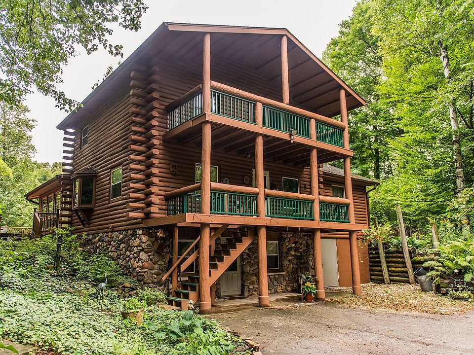 Unique log home nestled on 3 wooded acres adjacent to 160-acre Walla Hi County Park which offers equestrian trails, hiking & cross-country trails & home is only 2 miles from beautiful Cedar Lake boat launch. Spacious & bright, the main level offers magnificent views out every window. Newly updated eat in kitchen w/ granite countertops, ss appliances, large island & striking wood floors opens to a sizable living room w/ a rustic gas FP. Master suite w/ double closets & master bath w/ double vanities & impressive tiled walk-in shower. Upper level w/ 2 bdrms, den & full bath. LL walk out w/ a full bath, workshop & plenty of extra storage plus potential for additional bedroom & rec room. Decks on every level to relax & enjoy all that nature has to offer. FF laundry & 2.5 detached garage.