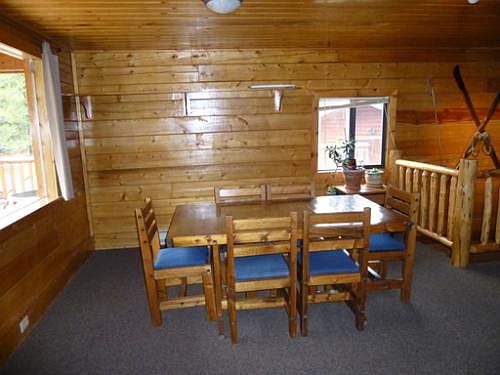 This two story 3 bedroom 2 bath cabin has an oversizedsingle car garage, an outdoor fire pit, is adjacent to state land,propane gas stove and a washer/dryer. The home has an interestingconfiguration but is very spacious. The home does come with adining table and one log bed. Great Pets Welcome