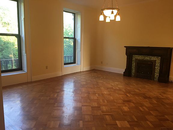 Very Spacious 2-bedroom apartment plus office, living room & eat-in kitchen. Apartment is whole 3rd floor (inside a mansion). Overlooks beautiful Washington Park! Beautiful designer hard wood floors, ornamental fireplace, central air conditioning and lots of natural light with large windows. Must be able to climb stairs to 3rd floor. Plenty of street parking. Short walk to downtown Troy. Available immediately.