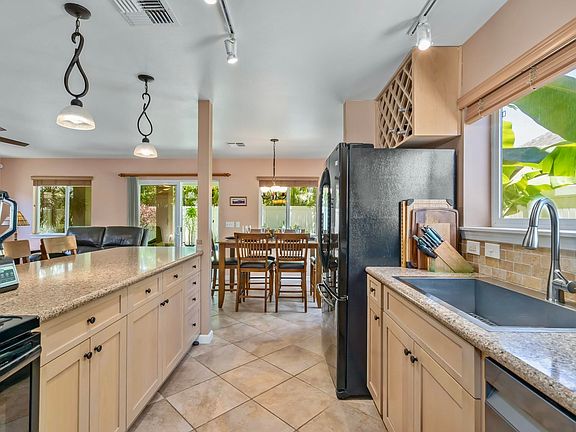 Beautifully maintained 3 bed/2.5 bath home in the popular Legends at Maui Lani. Multiple windows allow for natural light while the central air conditioning, tile and bamboo flooring and ceiling fans help keep this home cool. The remodeled kitchen features quartz countertops, new Samsung Dishwasher. Among the many features & upgrades is a home security system, sprinkler system, seamless gutters, E-Car loading station hook up, wireless operated garage door, etc. Out back is a spacious patio area perfect for entertaining. The covered lanai is right off the dining area and has views of the lush landscaping with multiple palm trees, Banana trees, Flowers etc. Privacy with 6 ft vinyl fencing the complete backyard and a smaller sized fenced in front yard with 23 eureka palm trees. The garage has two additional overhead storage cages. The home also comes with an owned solar system (39 panels) with payments averaging $24 per month as well as a solar water heater. Enjoy all that Central Maui has to offer, close to shopping, restaurants, airport, schools, golf and hospital.