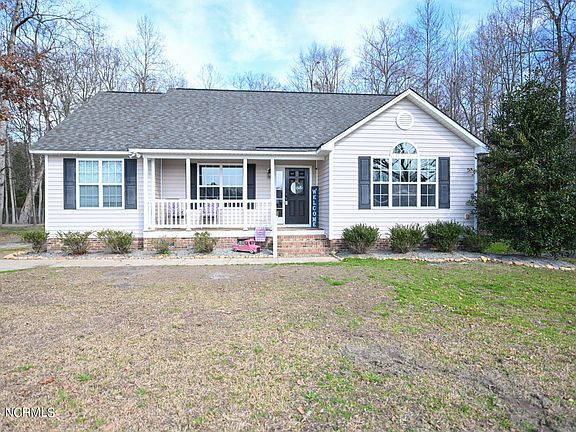 Step into your ideal home! This stunning ranch-style residence, nestled on a spacious 1.59-acre lot, boasts a generous back deck ideal for entertaining or enjoying tranquil evenings surrounded by nature. Embrace the partially wooded setting and charming front porch, creating delightful outdoor spaces to enjoy. Say goodbye to HOA fees and hello to freedom! Inside, you'll discover a thoughtfully designed split-bedroom floor plan offering both privacy and convenience. The kitchen is a culinary haven, equipped with abundant cabinetry, window above the sink offering the best views, and a pantry for all of your storage needs. Retreat to the owner's suite with high ceilings, a large closet and en suite bath, featuring a rejuvenating soaking tub and shower for ultimate relaxation. Additional features include a cozy gas log fireplace, soaring cathedral ceilings, and proximity to the highly sought-after Princeton school district. Don't miss out on this rare opportunity to embrace serene living! Convenient to I-95, HWY 70 and only 30 min from SJAFB. New HVAC 2022. Refrigerator conveys with acceptable offer. Ask agent about Seller Incentives!