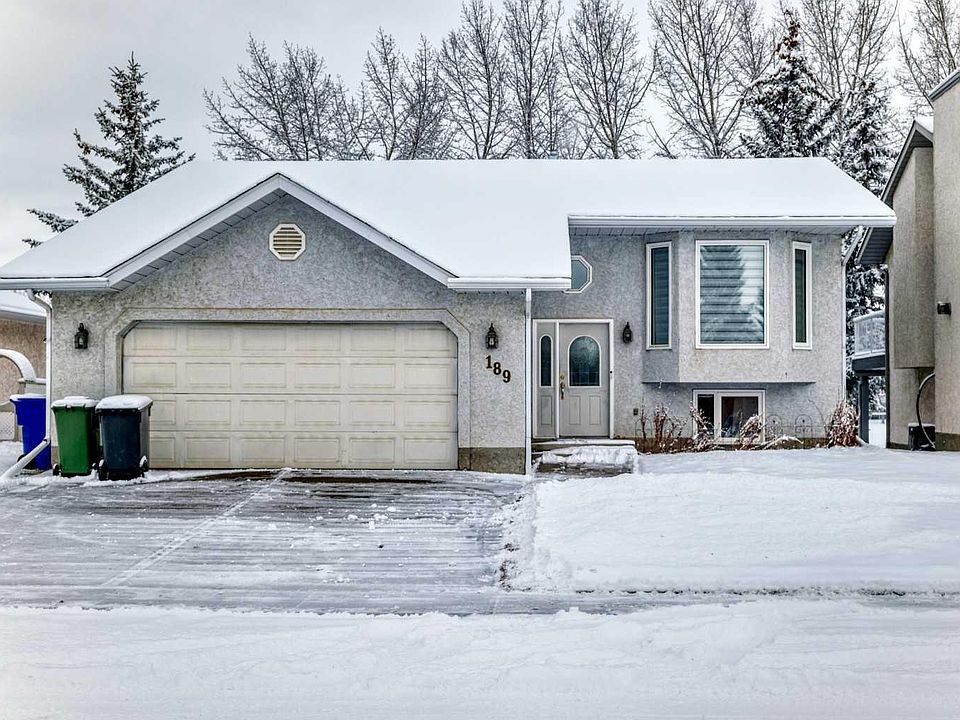Come home to this well-maintained five bedroom 1,224 sq ft home with an attached heated garage, ideally situated just a few doors down from the middle school and backing onto the expansive green playground surrounding it. The upper level offers bright, sun filled living spaces, including a combined living and dining area and a cheerful kitchen with an eating nook that overlooks the rear deck. The spacious primary bedroom easily accommodates a king size bed and additional furniture, and includes a 3 pce ensuite. Two more bedrooms and a 4 pce bathroom complete the main floor. Downstairs, enjoy cozy winter evenings in the oversized family room, warmed by in-floor heating. The large basement windows provide excellent natural light for the two lower-level bedrooms. A 3 pce bathroom, laundry/mechanical room and ample storage with newer flooring round out this level. Call today to book your showing, quick possession available!!
