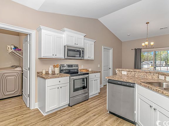 This one is IT! Pack your bags and point the moving truck to Baylee Circle to this beautiful and rare FOUR bedroom home located less than 30 miles from Myrtle Beach and in the Aynor School District. This neighborhood has no HOA and is just off of Hwy 501 yet nestled in a rural area with the closest restaurant only 1 mile away. The home was built in 2022 and has vaulted ceilings in the great room and Owner's Suite. There is a tray ceiling above dining room, white solid wood cabinets and sleek stainless appliances in the kitchen. The Owner's Suite is spacious with a large L-shaped walk in closet, double sinks in the bathroom with a large shower and linen closet. This is a split bedroom floor plan providing privacy for the Owner with the other three bedrooms on the other side of the great room. There is beautiful luxury vinyl plank flooring throughout most of the home with carpeting only in the bedrooms. There are great details such as smooth ceilings throughout the home, a utility sink in the finished garage with a service door and sidewalk that leads to the driveway. There are pull down stairs to the attic accessible from the garage also. This property is just outside of Aynor town limits and is in the Aynor school district only minutes from the grocery store, eateries and shopping and less than 30 miles to the beach! See this today!