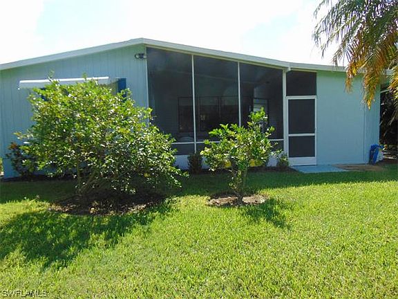 I enjoy sitting and looking out over the beautiful view of the public golf course in back. The neighborhood is safe and friendly.. This nicely maintained manufactured house offers all newer flooring, plumbing, central a/c, and insulation under the house. Vaulted ceilings, inside laundry room, sky lite, master bath and recently decorated inside are here for your enjoyment. There is an extra storage area which has electricity and a/c and another area makes a lovely art studio a bright cheery workshop. Plenty of space for entertaining both inside and outside. Freshly painted on the outside and inside. The well is for irrigating the lush lawn - this makes the water bill affordable. Located in a 55+ community of both manufactured houses and concrete block houses. Residents all share in activities at the clubhouse, activities building, swimming pool, tennis courts, shuffleboard etc. with homeowner association fees of $240 per quarter. Only minutes from downtown Naples and the Gulf beaches.
