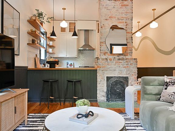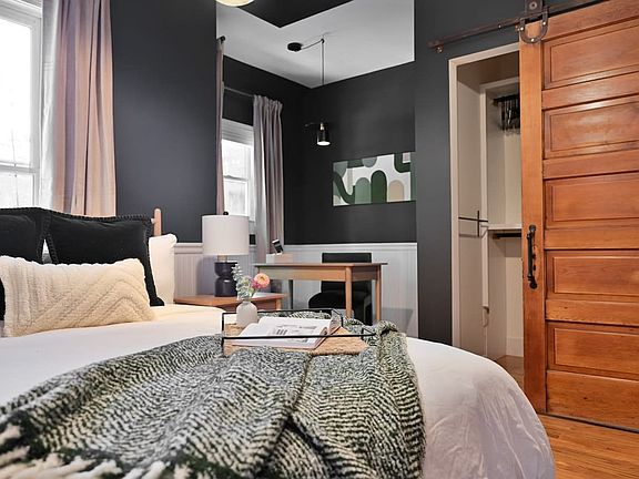 Step into a unique Cabbagetown rental that combines historic charm with modern comfort. This home features soaring ceilings, a chef's kitchen, and stunning brick details. The main level includes a private bedroom with a work-from-home desk and a bathroom, while the loft offers a queen sleeping area and a convenient half bath. This apartment is equipped with two queen beds, 1.5 baths, a gas range, shared back garden, laundry facilities, ultra-fast WiFi, a smart TV, and a Ring security system. Ideal for film and production, the property offers block booking capabilities, bulk discounts, and tailored services. Dogs are welcome with a fee of $250 for the first dog and $100 for the second. Electric vehicle charging is available for an additional $5 per night. Hot tub access is available for a fee. Free off- or on-street parking is provided. Cabbagetown is an artsy neighborhood with cozy eateries serving brunch, burgers, burritos, and brews. The area is known for its colorful cotton mill cottages and striking street art, including the famous Krog Street Tunnel. The neighborhood is conveniently located near the Atlanta BeltLine hike and bike trail and the historic Oakland Cemetery. Parties are strictly prohibited, with violators facing eviction and a $1000 fine. Quiet hours are from 9 PM to 8 AM, and failure to comply may result in a fine of one night's rent. Indoor smoking is fined $1500 plus ozone remediation costs. Late check-out incurs fees, and unauthorized guests may lead to fines and eviction. Check-in is available 24/7 via custom-coded keypad deadbolt locks, and all properties have Ring video doorbell cameras for security.
