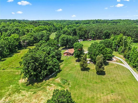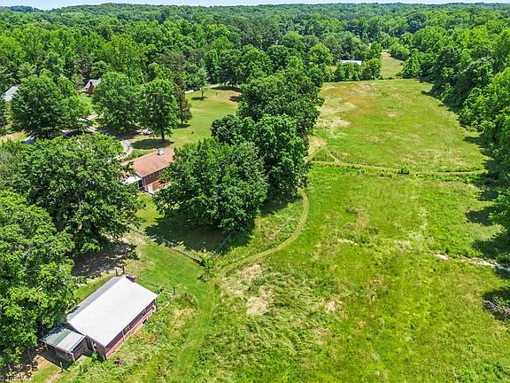 Dreaming of your own homestead tucked away off the main road with almost 10 acres? Spacious, low-maintenance, brick ranch with front porch overlooking pretty front gardens. Enjoy the screened porch and 11 x 34 deck overlooking back and side yards with a large, fenced area for everyone to play and dogs to run—big kitchen with lots of cabinets, den with fireplace, and plenty of storage. The garage has a second laundry room. Large carport for extra covered parking. One-bedroom brick guest house with its own fenced yard. This beautiful, peaceful property has numerous mature shade trees. There is approx. 6.5 acres of open pasture and a large separate fenced area approx. ¾ ac. with three outbuildings for chickens, goats, or other animals and an 18 x 28 pole barn. Just bring your animals and move right in. Wear your boots and walk along the grass path to Tinkers Creek at the back of the property. All this and close to shopping and schools too. The private drive is a shared 30 ft easement.