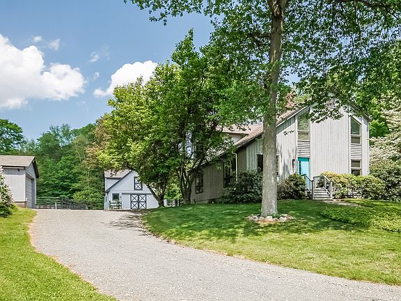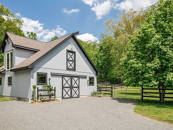 Quintessential equestrian property on trail system offers over 3 acres of thoughtfully designed layout for the most discerning horse lover! Enjoy the scenic beauty and charm of Western Connecticut. Your horses will feel pampered with a 4-stall barn complete with wash stall and tack room, 80' x 120' lighted riding ring, 4 paddocks with wood fencing, 2-stall run-in shed and heated automatic waterer. Everything has been done for you - just bring your horses and head out for a ride on miles of Newtown Bridle Lands Association trails that lead right from the property. Light and airy 4BR Contemporary home with vaulted ceiling great room clears the mind and encourages creativity. Beautiful hardwood floors throughout. Main level bedroom/office with full bath. Spacious kitchen featuring granite counters, stainless appliances and wood stove. Upstairs you'll find three additional bedrooms and full bath. Lovely easy-care perennial gardens share their beauty year after year. Great location, close to town and only 60 minutes to New York