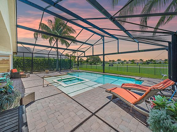 Everything you could want in a home is located right here in Jupiter Country Club. This community is known for their world-class amenities, luxurious homes, and close proximity to all Jupiter has to offer.Overlooking the 10th hole, this 3 bedroom + den, 2.5 bathroom CBS pool home had no detail left behind when being built in 2013. Pristine ceramic tile is placed throughout the home with 14ft tray ceilings. All bedrooms and living areas are spacious and inviting, perfect for entertaining. In the kitchen you will find granite countertops and top of the line stainless steel appliances. The home is protected by impact glass windows, with the exception of the breakfast nook. Enjoy the Florida lifestyle all year round on your meticulously maintained back yard with a screened-in pool.