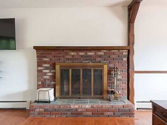 Seekonk- North End: A most unique property set on private 1-1/2 acre lot with separate detached garage/outbuilding. The dwelling has brick front with columned porch, rear composite deck, and 2car basement garage. The main level includes a living room (fireplace), dining room, kitchen, 2 bedrooms, hall bath, and a third bedroom with private bath. The lower level has a large rec room with fireplace/bar, lavette, laundry/utility room, and garages. Recent improvements include a new furnace, water heater, hardwood floors, redecorated bedrooms, and a new heating fuel tank. The home is set back from the road with front wooded buffer affording privacy but with a spacious yard and ample parking. The location has a rural feel but only minutes to highways/conveniences. New septic installed prior to closing! To settle estate.