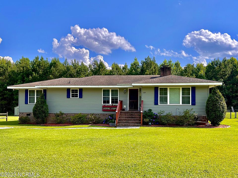 City Convenience with a country charm and amenities! Located 15 minutes from Greenville and 5 mins from all the Washington NC amenities plus 20 minutes south of Williamston you are in a GREAT location! This lovely and updated 3 BR 2 and 1/2 bath home has remodeled kitchen and bathrooms and utility room from 2018 when it was moved for highway 17 widening. Featuring an open floor plan plus real fireplace, hardwood floors in much of the home and an enormous primary bedroom suite this home has the layout and updates for a 'wow' factor! Roof, windows, deck, HVAC and wiring and plumbing are only 7 years old and the primary structure is built like they 'used to'! Even the crawl space is wide open the back yard has a new fence and the septic of course is only 7 years old. In a market with low inventory and rising values this 1600 sf home is a 'must see'!
