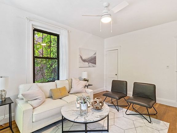Stylish & renovated one bedroom condo available in Brighton's best location! You will love this perfectly laid out 1 Bed/1 Bath condo with charm and modern updates. Totally turnkey - nothing to do but move in and enjoy the spectacular location! Notable features include high ceilings throughout, a kitchen with new appliances (2021/2022), ample counter space, and room for a small dining set. The bathroom has been newly renovated (2022) and the entire unit is freshly painted with new ceiling fans and light fixtures. Condo also includes a large living room (has a closet and can possibly be used as another bedroom), hardwood and tile floors, large windows for natural light, and a modern aesthetic. There is a shared balcony for outdoor space and storage space in the basement. Laundry in the building. Fabulously convenient location close to the B,C,D lines, universities, shops and restaurants of Cleveland Circle & Brighton Center. Bus to Cambridge right outside and easy highway access!
