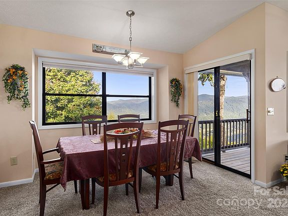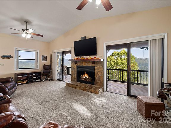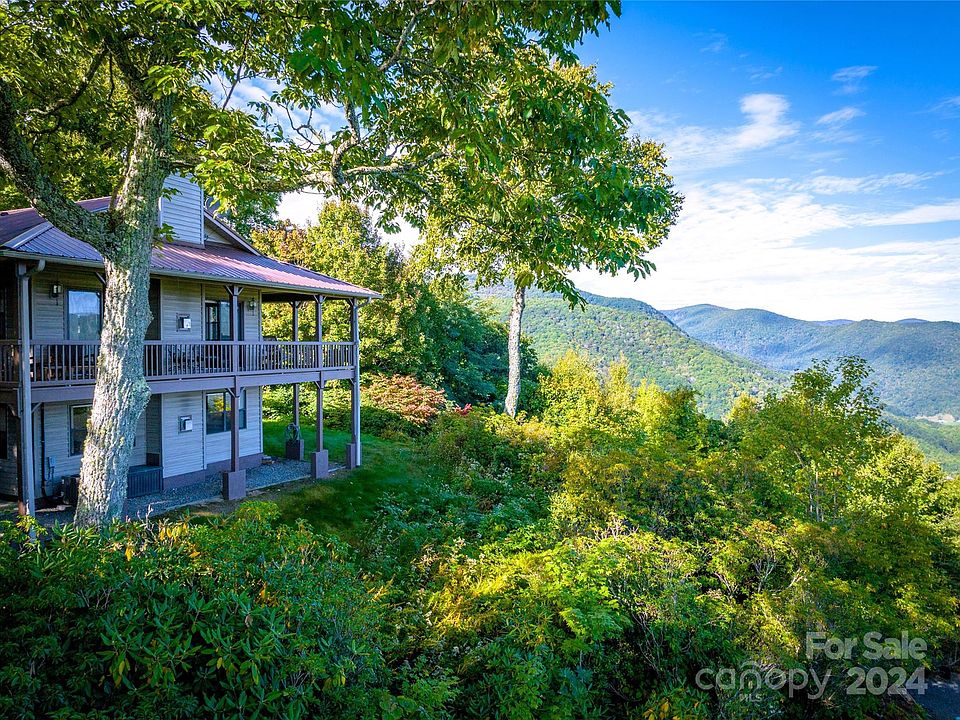 "Prepare to be Impressed" by the distant MOUNTAIN VIEWS extending from Sunrise to Sunset at this high elevation Vacation Rental.. "Retreat" to the peace and quiet offered by the surrounding protected preserve hiking area.. This well maintained home offers modern comfort on the spacious Main Level with a vaulted Great Room with stone fireplace flanked by the VIEWS, Powder Room, Primary bedroom with ensuite bath, walk in closet, Dining, Kitchen, Laundry, and Covered Porches enjoy Views for relaxing or grilling.. Downstairs the family room is big enough for built-in bunks with a gas-log fireplace, VIEWS, full bath, guest bedroom and 1-car Garage, flat Parking and wide turn around.. Easy to walk level Yard. Paved access. Metal Roof 2022. Heat pump has propane back up.. Cool elevation temperatures all summer.. High Speed INTERNET: Skyrunner. City Water. Furnishings available for $2,000 ready-to-rent. Fabulous Mountain Setting is just minutes to Maggie Valley, Dining, Hiking and Asheville