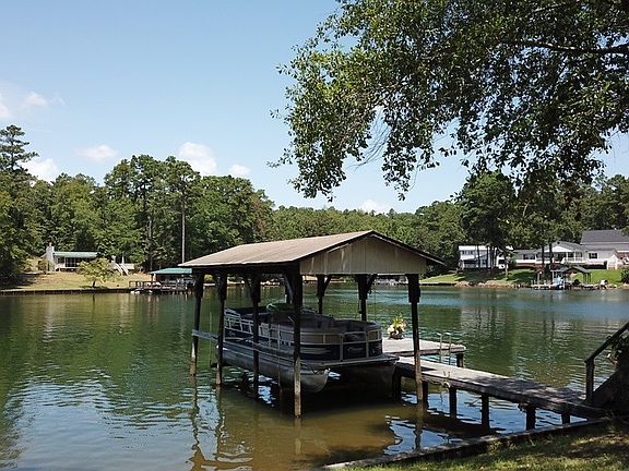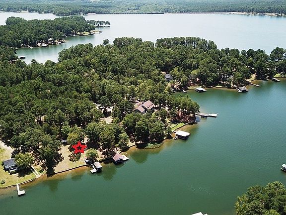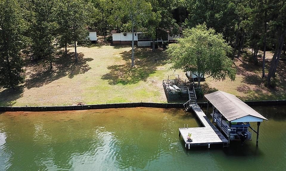 Beautiful deep 12 ft. water comes with this really cute lake home. Almost an acre lot and 181 ft. of water frontage. 2 bedroom, 2 baths with screened porches on the front and back. Two storage sheds and double carport. Nice firepit too!. Frugal lake living. This is some of the clearest water on the lake with sandy bottom for your toes. Convenient to town.