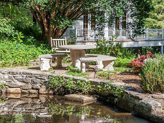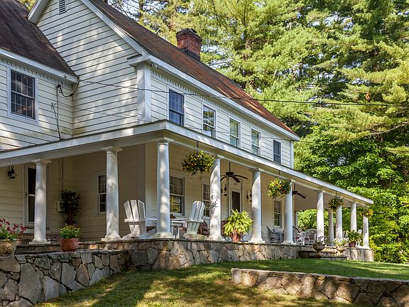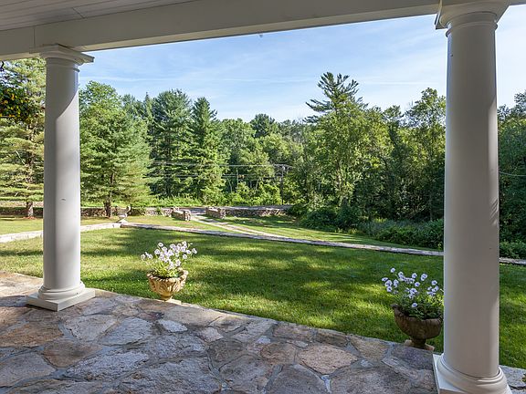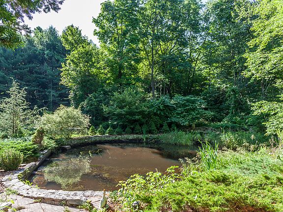 Stately home nicely set back from the road with a open porch with pillars and a stone floor. There is plenty of room in this welcoming home to accommodate all of your friends and family with 4 bedrooms, eat-in kitchen, formal dining room, huge family room, library, office, gym and even a hot tub room. There is a guesthouse with separate driveway, fireplace & hardwood floors that could be for an in-law, au pair or as a rental. It is a magical setting with steps leading to a spring fed pond, private terrace and footbridge. The eat-in kitchen features granite counters, a center island, custom farmer's sink and plenty of storage. The eat-in area open to a private stone terrace. The huge family room has hardwood floors, high ceilings and a brick fireplace. There is a large office above with extra attic storage. The master bedroom features a fireplace, walk-in closet, hardwood floor and full bath with shower & tub. There are 3 fireplaces, a main level laundry and central air. This is a wonderful full time or weekend home only 90 minutes from the city.