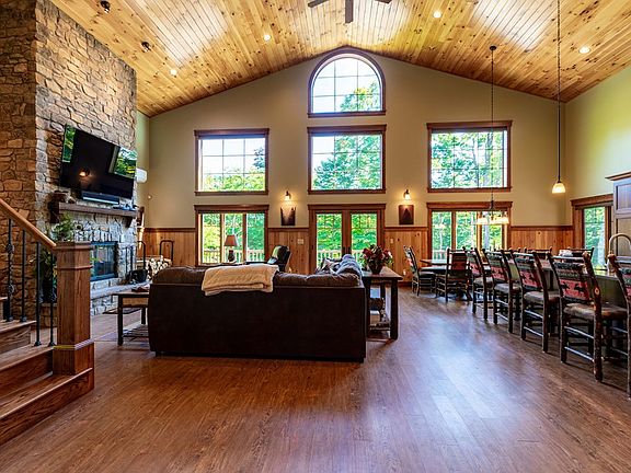This unique custom home is absolutely flawless and perfect for entertaining with a 910 square foot great room with a beautiful stone fireplace and a large front porch. Your guests will enjoy every minute spent in this tastefully decorated retreat with a private gym, hot tub, movie room and bar area! This home has a master suite with a gorgeous master bath, walk-in closet and private balcony overlooking the woods. Accommodate your overnight guests with three additional bedrooms, three full baths and a main floor powder room. The home is located on quiet street in Hollywood Hills, a few minutes from Old Forge, the snowmobile trails and lake rights to First Lake.