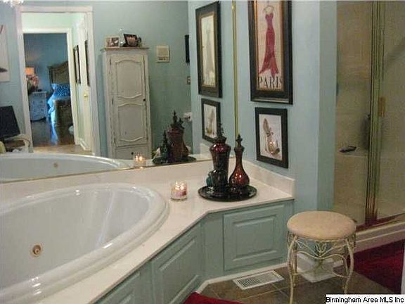 Private and quiet! This beautiful one level home is offers spacious rooms including family room, living room, den, formal dining room, kitchen with breakfast bar, and huge laundry room. The master suite is complete with his and her vanities, jetted tub, and separate walk-in shower. Additional amenities include foyer with trey ceiling and marble floors, 9' ceilings, gleaming hardwood floors, gorgeous crown molding, large closets, 3 fireplaces, 3 car garage with workshop, basement complete with safe room, large covered front porch, stunning lush custom landscaping.