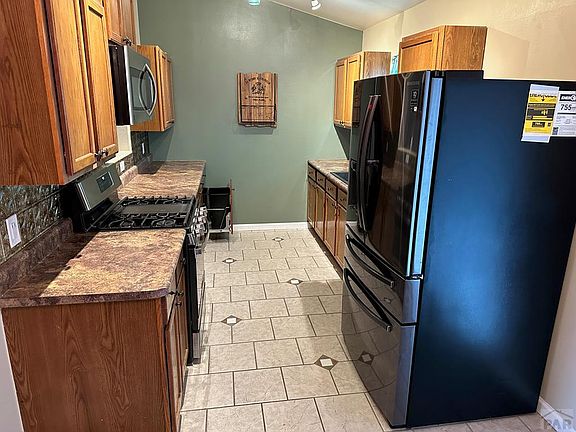 This gorgeous Pueblo West rancher offers plenty of living space. Vaulted ceilings, 4 bedrooms, 3 Full bathrooms, completely finished basement with a Den/Office.Many upgrades throughout including high performance wood-look LVT flooring in the living room and bedrooms, rubbed bronze fixtures and numerous ceiling fans. Tile in kitchen, baths and laundry room. The kitchen boasts high quality stainless steel appliances featuring Gas Range/Oven, built-in microwave, refrigerator with water/ice dispenser, dishwasher and large sink. Spacious family room in the basement complete with custom wet bar featuring rustic barnwood accents, shelving with built-in stemware hangers. Large laundry room with additional sink and cabinetry with counter space. Landscaped with xeriscaping in mind, you'll love the garden areas and fully fenced backyard. The large deck is perfect for entertaining - complete with outdoor lighting. Storage shed with electrical power, custom built fire pit and shade trees. Recessed accent lighting installed in outdoor soffits. The finished garage is wired for 220V for welders/air compressors. Document attached with all the improvements made in 2021, 2022 and 2023. New double pane vinyl windows installed around house in November 2021. Roof was replaced Fall of 2017. Located on a paved street within close proximity to schools, parks, shopping and Desert Hawk golf course.
