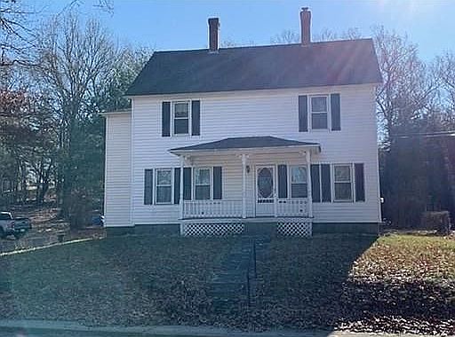 New to market in Uxbridge! This beautiful, classic Colonial will not disappoint. Set on a country road, this 4 bedroom, 1.5 bath home has been tastefully renovated throughout, including newer vinyl siding, windows, roof, and heating system. This colonial has loads of character and retains much of its original interior detail, including beautiful, wide pine flooring throughout, built-ins, and first floor high ceilings, all while modernizing the home with kitchen updates, including recessed lighting, open cabinetry, stone backsplash and stainless appliances. Come put the finishing touches on this wonderful home. Additonal, unfinished attic space, complete with skylights, would make a great place to increase the footprint of this home. Almost 1 full acre with an expansive back yard, complete this home that is close to conservation areas and priced to sell quickly. Don't wait on this one!