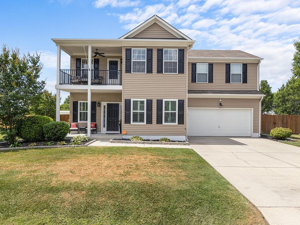 Beautifully kept and updated home on huge corner lot. Outdoor entertainers' paradise with a saltwater pool, brand-new liner, and fountains to wow. The backyard is beautifully landscaped with ample concrete around pool and large patio area that is fully fenced in. Open concept on 1st level with kitchen that opens to spacious living room with propane fireplace. Built-in shelves and wine rack add to the downstairs formal dining area. A wall of windows with plantation shutters looks out into the backyard. Gorgeous white kitchen w/ granite countertops, brand new dishwasher and stove & SS smart refrigerator that conveys. New laminate flooring throughout completes the downstairs. 4 Bedrooms upstairs with loft area off primary bedroom perfect for office space as well as large walk-in closet. Less than 2 year old carpet throughout 2nd floor. Primary bedroom has balcony that looks out over front yard as well as views of golf course. Laundry hook-ups are found on 2nd floor as well. Neighborhood is located on golf course community with access to Clubhouse just down the street. Located less than 5 minutes from Middle School and less than 10 minutes from Elementary School. Perfectly settled in between Outer Banks and Chesapeake, VA.