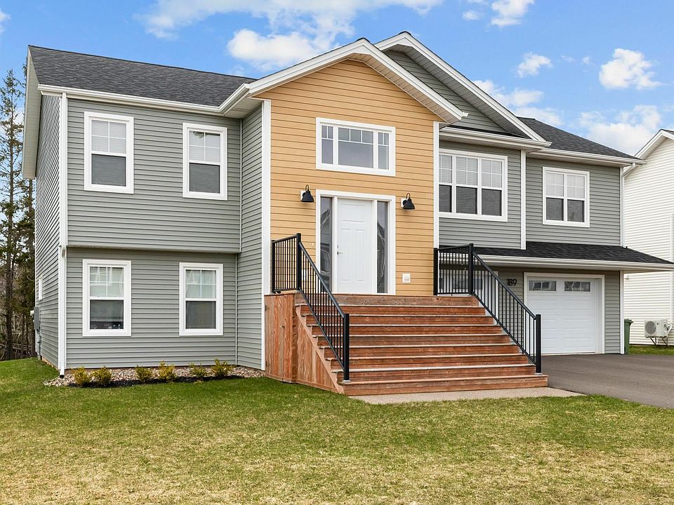 Welcome to 189 Essex Crescent, a stunning split-level home built in 2020 located in a friendly family neighborhood. This home boasts 4 bedrooms and 3 full baths, offering ample space and comfort for your family. Upon entering, you'll be impressed by the high-end, modern finishes throughout. The main living area features engineered hardwood flooring, solid surface countertops, and stainless steel appliances, creating a luxurious atmosphere. The high ceilings enhance the spacious open-concept design, making it perfect for entertaining guests or relaxing with family. The large primary bedroom is a true retreat, with its own walk-in closet and a gorgeous ensuite bathroom. The ensuite includes a deep soaker tub, a ceramic tile stand-up shower, and his and her sinks, providing the ultimate in comfort and convenience. One of the standout features of this home is its energy efficiency. With a 200 amp panel, the home can be entirely heated by electricity. A heat pump on both the main living area and lower level provides both heating and air conditioning, while modern flat panel heat radiators in the other rooms allow for individual heat settings, saving you money on utility costs. The oversized 2-car garage is heated, offering plenty of space for your vehicles and storage needs. Situated on a perimeter lot, this home offers extra privacy, with no neighbors behind you. The backyard and oversized deck overlook a large wooded tree area, providing a peaceful and serene setting. This home is located in a welcoming family neighborhood, where you can enjoy walks with your dog, play with your kids in the driveway or nearby park, and interact with friendly neighbors. Don't miss out on the opportunity to make this beautiful home yours! Some images have been virtually staged to show the potential of the space.