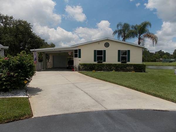 THE NEW, ROCK BOTTOM PRICE OF $12,700 IS FIRM. THIS IS A FANTASTIC BUYER'S OPPORTUNITY!! Just imagine yourself next winter relaxing in the Florida sunshine beside this marvelous 1997 Homes of Merit with a spectacular golf and water view. Priced at $12,700, and measuring 27x41, plus a 10x14 Florida room, you will have 1240 total square feet of interior space to enjoy life as never before. The home is modern, super clean, thoroughly updated, so your transition will be stress free. It is located in The Hamptons Golf and Country Club of Auburndale, a premier, resort-like 55+ adult community in the heart of Central Florida. The monthly lot rent of $957.35 includes taxes, trash removal, and use of park amenities. Your dream home in paradise is waiting; call today. Recent updates and additions to the home include: Vinyl replaced in Florida room windows, tinted home windows, replaced window blinds, installed drapes in living room and Florida room, replaced storm door, updated ceiling fans and lights, added stainless Maytag appliances in kitchen, replaced kitchen counter tops, updated kitchen sink and faucet, repainted most interior rooms, A/C unit serviced semi-annually. This is a manufactured home on leased land. The monthly lot rent is $957.35. The land/lot is not included with the sale.