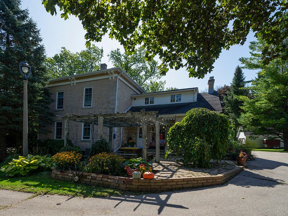 This extraordinary 1868 Italianate stone home offers an excellent blend of original, unique architecture & contemporary updates. Sun lit rooms offer high ceilings, hardwood floors, deep set windows, wainscoting & brick walls. Trendy kitchen offers white cabinetry, granite counters, huge pantry w/loads of storage. Step back into time in the smoke room w/original brick ovens. Both baths will wow you! Main level bath graced w/clawfoot tub, subway tile shower. Upper level bath w/gorgeous tile floor, shower stall & laundry room, commode flanked by columns. Unique master bedroom w/stone walls, barn door. Dual entry drive, chicken coop, 3 car detached garage & historic barn perfect for studio/workshop. Easy commute - minutes from I43. See documents for list of seller updates. Home warranty too.