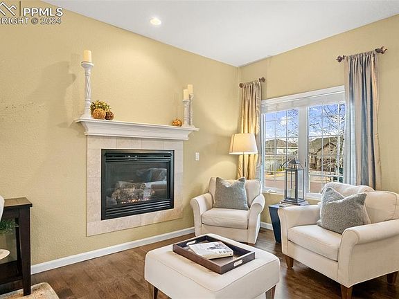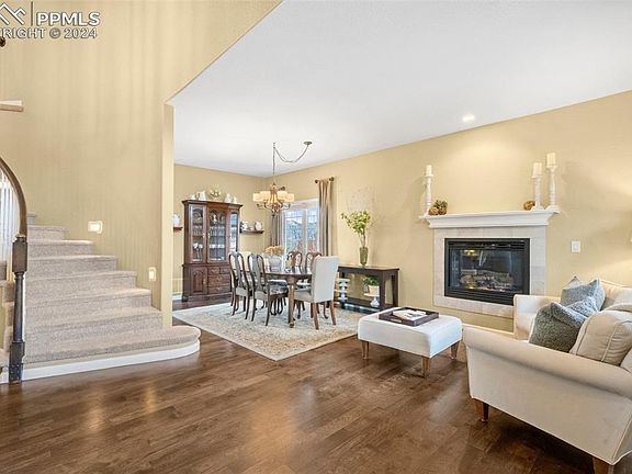 Welcome to your dream home nestled in the heart of Monument, presenting an unparalleled living experience. This magnificent 6-bed, 5-bath, 3-car garage residence boasts captivating mountain views that will leave you in awe from the moment you arrive. As you enter, you will be greeted by a grand foyer, hardwood floors, elegant staircase, and formal living and dining rooms that sets the tone for the elegance and sophistication found throughout the home. Make your way to the gourmet kitchen, a culinary enthusiast's delight featuring gas range, quartz counters, and counter bar for casual dining. The spacious pantry ensures ample storage, while the adjacent eating area offers a seamless transition to the back deck, where breathtaking views await. Enjoy the expansive family room, adorned with built-ins and a double-sided fireplace connecting with the large office, creating a cozy ambiance for relaxation and entertainment. Completing the main level are the laundry room, half bath, and garage entry where you will be delighted by the abundant storage system. Head to the upper level to discover the luxurious primary suite, a private retreat boasting a sitting area, fireplace, built-ins, and adjoined beautifully updated 5-piece bath with heated floors and large walk-in closet. Two additional bedrooms, each with walk-in closets, share a 3/4 Jack & Jill bath, while a third bedroom has its own atttached bath and walk-in closet. The fully finished basement offers additional living space with two bedrooms, a full bathroom, large family room and additional laundry hookup, providing endless possibilities for recreation and relaxation. Step outside to the park like backyard where a patio with built-in fireplace awaits, offering the perfect setting for outdoor gatherings while marveling at views of the Air Force Academy and the majestic mountain range. This exceptional property combines luxurious living with breathtaking natural beauty, offering your own private sanctuary to cherish.