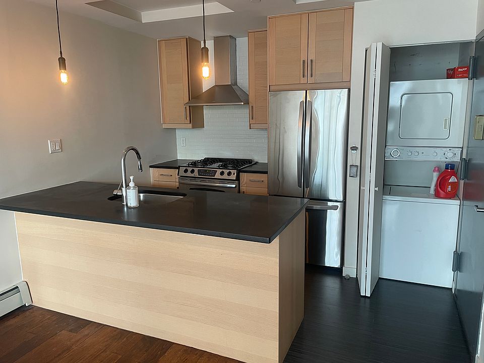 This is a large, modern and very sunny 1 bedroom apartment in central Greenpoint, Brooklyn. The apartment (approx. 725 sq. ft) is located only 1.5 blocks away from the subway (Greenpoint subway station). It's in a new building with only eight units. The apartment gets plenty of direct sunlight with the floor to ceiling windows, and has a balcony with sliding doors/screen that lets you step out of the apartment. Apartment includes: Stainless steel kitchen appliances Custom stone countertops Dishwasher Wine fridge California-closet style walk-in closet Glass showers with built in benches (becomes a steam room) Bathtub with jets (like a jacuzzi) Washer/dryer in unit Dark hardwood floors Split level air conditioner in living room/bedroom (with remote control) Juliet balcony High ceilings with Floor to Ceiling windows Tenant must be able to provide the following: $75 credit check/processing fee (for each name on the lease) - non-refundable Last two pay stubs Two written references Bank statements for last two months First months rent + 1 month security deposit No smokers, no pets.