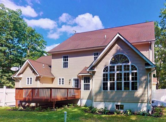 FARMHOUSE COLONIAL ON 1.02 ACRES-POCONO WOODLAND LAKES, MILFORD! The perfect family home featuring 3, 000 sq ft of living space, 4 Bedrooms, 2.5 Baths, huge 2 story Master Suite with private en suite bath with shower, jetted tub, his her sinks, and walk-in closet. 1st-floor eat-in-kitchen with granite countertops and S S appliances, formal dining room, 2-story great room, and living room all with beautiful high shine hardwood floors! There's a 3rd-floor walk-up attic for future expansion or storage. The full basement has bilco doors to the yard and 10 foot high ceilings plus a whole house generator too! The back yard is completely fenced in with a shed, the driveway is paved with paver stone walkway to the covered front porch of this fabulous stately home! MINUTES TO MILFORD!