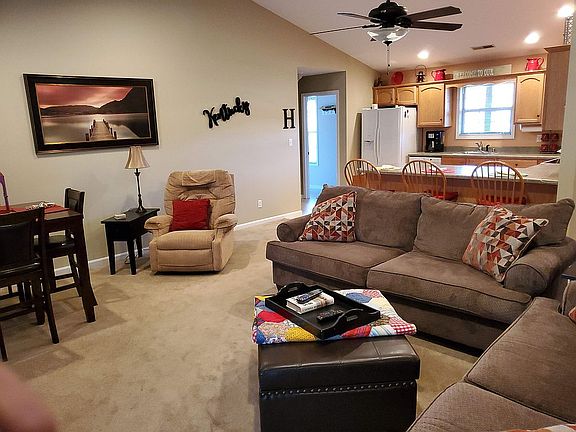Nolin Lake Home for sale. Home is located in the gated community of Poplar Ridge subdivision in Cub Run/Wax area. This home has 3 large bedrooms and 2 full baths. Every bedroom has an 8ft. double door closet. Also included is the extra large 22 x 28 sf attached garage. Leading in from the garage is the large laundry/utility room. The open kitchen and family room offer lots of open room for large family gathering. Additional play area is the 300 sf screened enclosed covered deck that provides morning views of scattered wildlife. Additional outdoor grilling area includes the 288 sf. attached deck. The gently sloping backyard leads right down to your very own over sized playground that includes 5800 acres pool/lake! Only a few lots have this convenience. 2 Boat launch ramps are within 1.5 miles in either direction. Intangibles are too many to list. FOR FASTER RESPONSE please call/tx Mike at 502-644-8487 for appointment or information.