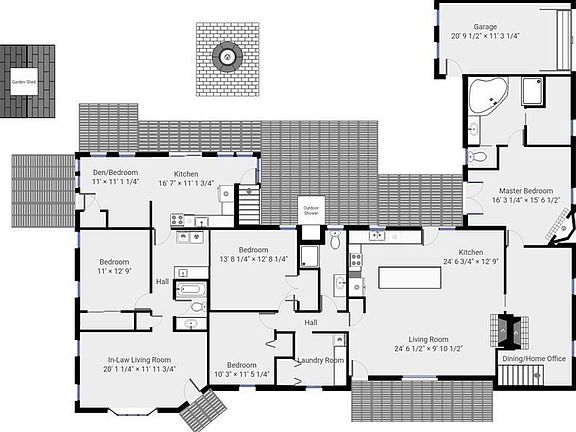 - Exterior features: Balcony / Deck, Storage, Garden, Outdoor Shower