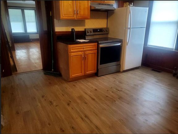 3 Bedroom 1 bath Newly Remodeled 1400 sq foot apartment. Has off street parking with a great commuter location. Laundry set up in basement. No pets Hardwood floors. Full kitchen includes Granite counter tops, dishwasher, Stove and refrigerator Mini splits with high efficiency heating and cooling with gas heat option. Option to also rent private 2 car garage on property. Owner pays for water. Renter is responsible for gas and electricity.