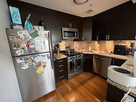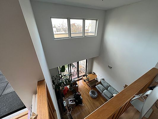Gorgeous duplex with private roof deck. Two full bathrooms. Huge modern kitchen. Central A/C Upper level opens to living room. Perfect for home office or flex sleeping. One month fee. Washer/Dryer hookups.