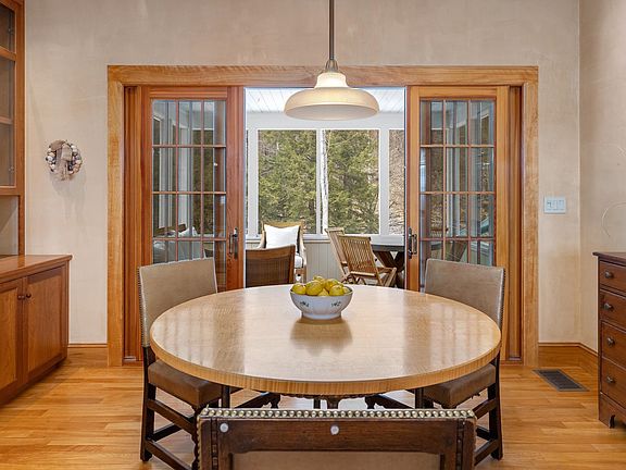 This exquisite home with outstanding architecture by premier firm Smith & Vansant sits on 80+/- acres of open fields and private woods and is less than 20 minutes to Hanover, NH town center. Solid construction, magnificent custom woodwork, high ceilings, and pigmented plaster walls compliment the thoughtfully designed spaces. The first floor has a large living room/dining room which leads to a smaller sitting room on one side, a screened porch on the other, and is open to the kitchen. Fantastic first floor master suite and shower with heated walls. 3 bedrooms, 3.5 baths. 15 kilowatt solar array. High Speed internet. Central a/c. Generator. The many conveniences include a large bonus room upstairs, "mail room" off the mudroom, first floor laundry room and triple garage. Designed to fit seamlessly into the New England vernacular, this timeless home takes in the light and bucolic views of the idyllic Vermont landscape. A great one!