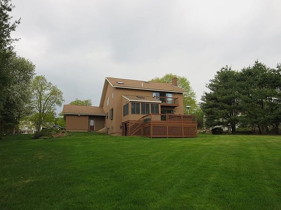 Beautiful updated kitchen with granite counter top, breakfast bar, cook top, double oven, microwave, dishwasher, & refrigerator all included. Open concept kitchen, dining room, living room with fireplace, 3 season porch, double decks, spa. All this overlooking a landscaped yard with an irrigation system front & back. First floor also has an office, laundry room and 1/2 bath. Three generous sized bedrooms on the second floor, including a master bedroom with a balcony, walk in closet and beautiful master bath suite. Lower level entertainment room with a 1/2 bath, unfinished area for storage, and a bulk head. Additional extras include: 3 car garage, Central Air, Central Vac, Hardwood floors, recessed lights, ceiling fans, alarm system, Kohler Generator (automatically goes on when needed), 5 zone gas heat, Navien hot water, Pull down attic, invisible fence.