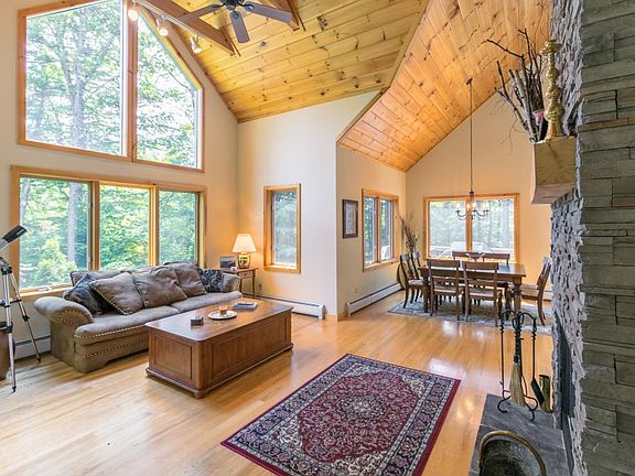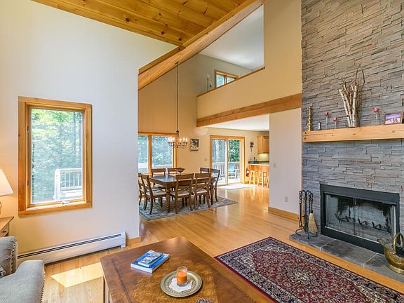 This Great Mountain Getaway is just minutes to Mt. Snow and Stratton trails with all the qualities one looks for in a Mountain Home. Warm Wood Accents, Cathedral Ceilings, Floor to Ceiling Stone Fireplace, Open Floor plan with Hardwood Floors, Spacious Kitchen opens to Large Deck. Walk-Out Lower Level Gathering/Game Room with Bunk Room and Full Bath for all to enjoy. Large Master Bedroom Level-en-Suite with Loft for private relaxation. Well maintained, move right in and start enjoying this turn key home. Situated in a beautiful wooded setting in Snow Mtn. Farms West. Private and Convenient to Year Round Recreation. Snowmobiling, Grout Pond, Ski Resorts all at your doorstep.