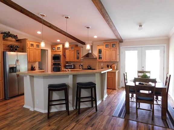 Wake up in the morning, and stare at the Spring River as you drink your coffee! This mobile home features a wrap-around deck, a little over 1700 sq ft, 3 bedrooms, and 2 bathrooms. The home has been well taken care of, and is very spacious. There is also a cute well-house, plus a large shop that has electricity. The property is mostly level, with a slope down to the water. There are steps down to the river, and a platform for you to set some chairs on it so you can watch the water flow by.