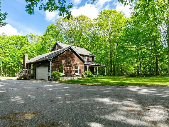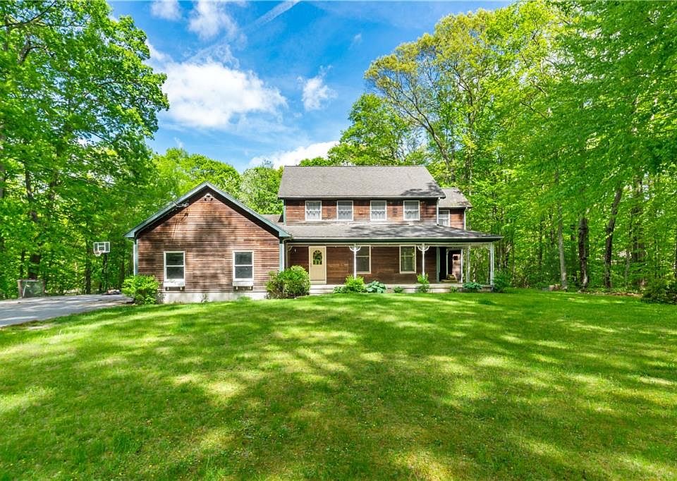 Enjoy tranquil privacy in this perfect 4-bedroom, 2.5-bath colonial home, set back off the road on over 3 acres of land lined with stone walls. Farm porch and the over side deck allow you to enjoy this lot to the fullest. The open-concept living room with cathedral ceilings flows seamlessly into a custom-built gourmet kitchen with high end appliances and features stunning hardwood floors throughout and a spacious 2-car garage with perfect custom built locker closet.